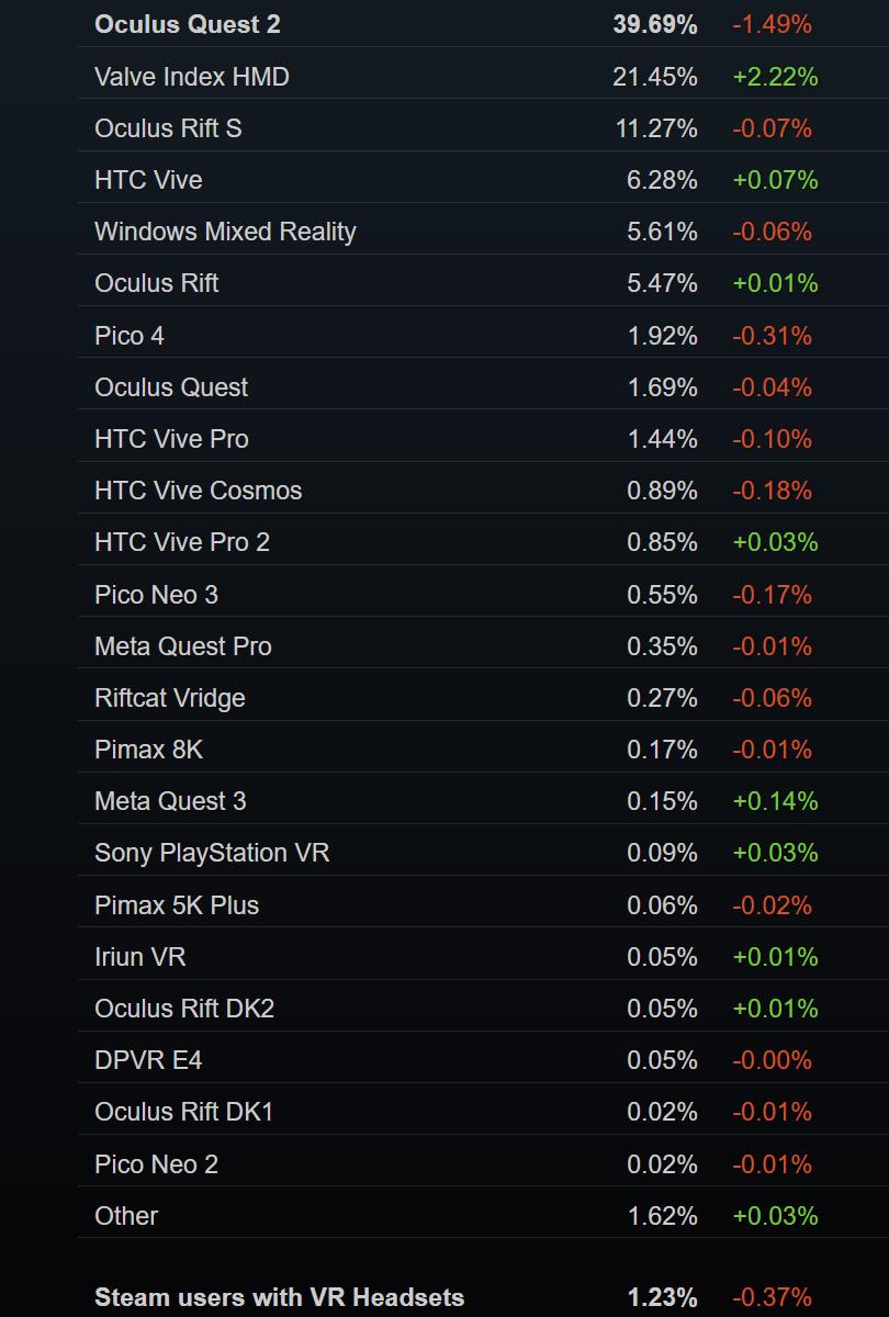 Valve發(fā)布了10月Steam硬件和軟件調(diào)查報(bào)告,我們可以看到Meta Quest 3出現(xiàn)在了報(bào)告之中。