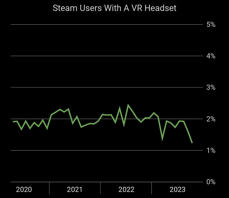 最后,SteamVR用戶總數(shù)下降至多年來的最低水平,降至1.23%,但這很可能是由于Steam非VR簡(jiǎn)體中文用戶異常增多所致,這個(gè)問題過去曾影響過平臺(tái)調(diào)查報(bào)告。