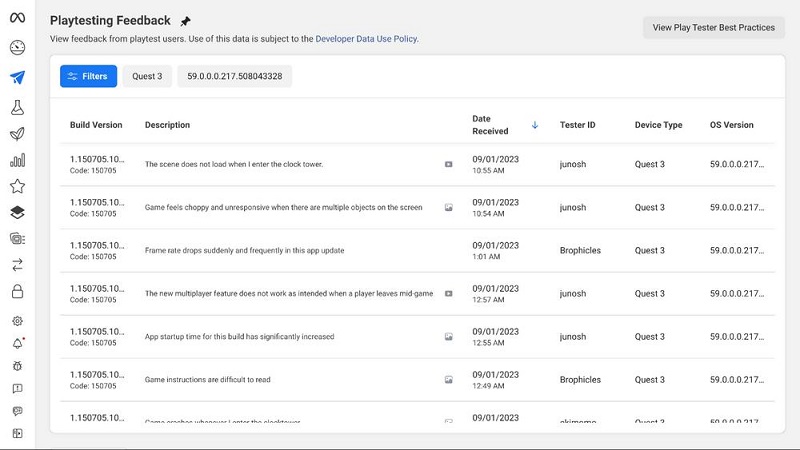 開發(fā)者可在Quest開發(fā)者儀表板上查看所有提交的反饋,無須建立專用Bug跟蹤系統(tǒng)。顯而易見,這些新功能和工具對于小型且為早期測試社區(qū)成員的Quest開發(fā)者來說將是一個受歡迎的變化,這將能幫助加快VR和MR游戲發(fā)布的進(jìn)程。