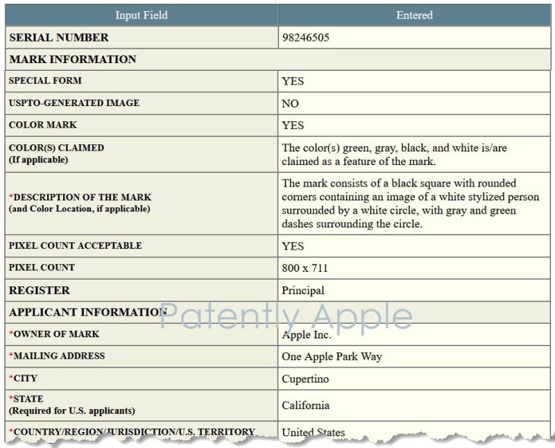蘋果將該圖形商標注冊于International Class 09,這包括“面部掃描和測量軟件;可穿戴計算機硬件安裝軟件”。