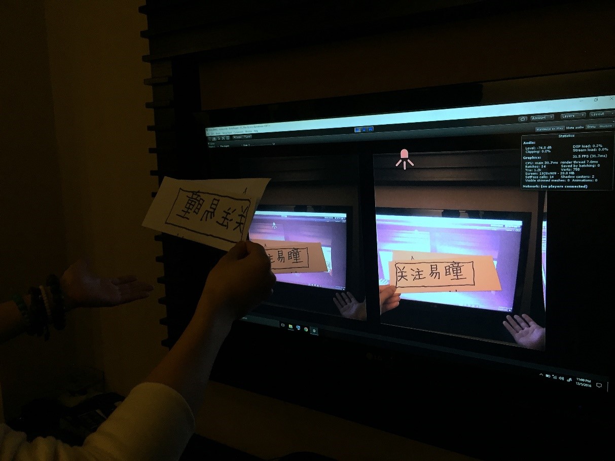 為參展此次CES易瞳科技做了精心準備,除了Demo展示之外還為到場觀眾準備了精彩的游戲環(huán)節(jié)和定制獎品?,F(xiàn)場播放的視頻內(nèi)容為即將面世的下代新品—— VMG-MARK,基于視頻透視技術(shù),可以實現(xiàn)超低延時并集VR與AR的優(yōu)點于一身,并實現(xiàn)光學透視達不到的效果。例如視頻風格轉(zhuǎn)換,VMG-MARK在深度學習框架下學習某大師的畫風之后,就可對目及空間進行即時定位建圖并實時渲染成此種畫風,呈現(xiàn)出110°大視角的震撼AR畫面。