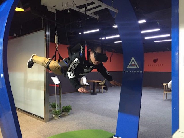 上周我受邀來到深圳天網(wǎng)公司在北京的展示中心,體驗了其VR降落傘項目。去年夏天我參加了深圳天網(wǎng)的新品發(fā)布會,會上這家公司發(fā)布了一套VR無線傳輸方案,據(jù)稱該項技術(shù)可以解決VR應(yīng)用內(nèi)容過大造成的數(shù)據(jù)傳輸過程中的延時問題,實現(xiàn)了VR數(shù)據(jù)的wifi傳輸。關(guān)于這項神秘的無線傳輸技術(shù),我想以后專門仔細(xì)了解一下,而這次拜訪的主要目的則是體驗這個VR降落傘項目。