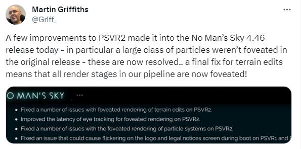 不僅如此Martin Griffiths還修復(fù)了地形問(wèn)題,該地形現(xiàn)在像渲染管道的其余部分一樣完全聚焦,并改善了使用渲染技術(shù)時(shí)眼動(dòng)追蹤延遲。除了這些針對(duì)PS VR 2版本的改進(jìn),4.46更新還為所有支持「無(wú)人深空」的VR平臺(tái)引入了左手模式。