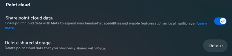 而要在頭顯上啟用此功能,你需要在“設(shè)置”->“隱私”->“設(shè)備權(quán)限”中啟用“共享點云數(shù)據(jù)”。