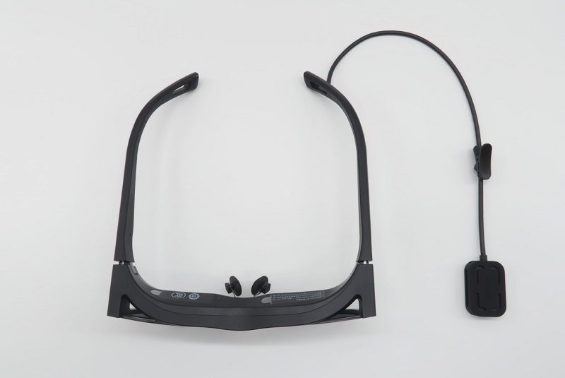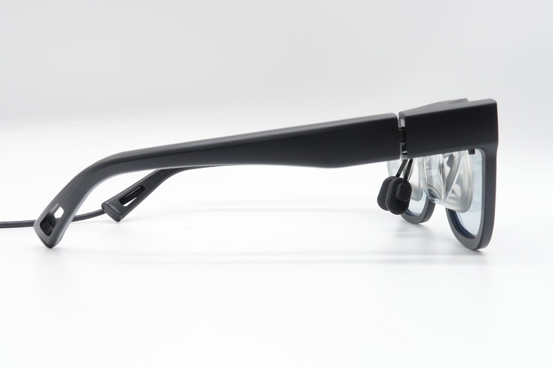 顯示芯片外置的另一個優(yōu)勢,則是減少了機身的熱源,保證長時間使用的情況下機身發(fā)熱量可以得到有效的控制,不會造成面部的熱感。連接線的材質(zhì)十分柔軟,還配備了線夾,可以隨消費者的心意固定到任何位置上。值得一提的是,該模塊還可以實現(xiàn)一鍵息屏/點亮功能,相比在鏡框上設(shè)置傳感器的方案來說使用更加靈活。
