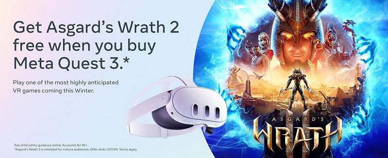 不僅如此,Quest 3捆綁了3A級(jí)大作「阿斯加德之怒 2」(限時(shí)優(yōu)惠將持續(xù)到2024年1月27日,或庫(kù)存售完為止。),這是一款引人入勝的VR冒險(xiǎn)戰(zhàn)斗游戲,增加了Quest 3購(gòu)買價(jià)值。