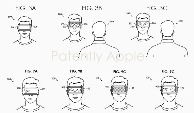 因此,蘋果專利涵蓋了包含外向或向外定向輸出系統(tǒng)的HMD,例如外部顯示屏(高分辨率和/或低分辨率顯示器)、揚(yáng)聲器等,這些系統(tǒng)可以真實(shí)向觀察者顯示或以其他方式呈現(xiàn)信息。這種向外顯示或呈現(xiàn)的信息可提供通信路徑,以穿透虛擬現(xiàn)實(shí)環(huán)境沉浸式世界,從而打破HMD物理障礙。