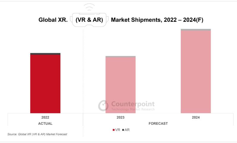 根據(jù)市場(chǎng)調(diào)研機(jī)構(gòu)Counterpoint發(fā)布的全球XR(VR/AR)市場(chǎng)分析報(bào)告預(yù)測(cè),2024年XR頭顯出貨量預(yù)計(jì)將增加390萬(wàn)臺(tái),達(dá)到創(chuàng)紀(jì)錄的兩位數(shù)同比高增長(zhǎng)。