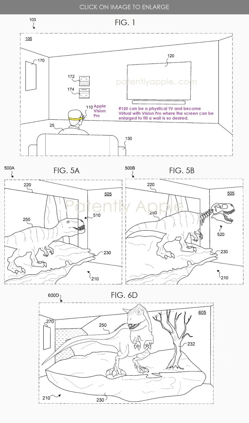 蘋果專利圖1示出了示例性物理環(huán)境#100。圖1展示了在物理環(huán)境空間中運行的示例電子設備 #110(Apple Vision Pro)。在此示例中,該空間包括屏幕#120,該屏幕#120可為物理結構或物體,或者屏幕#120也可代表墻上的區(qū)域或表面,Vision Pro可在其中向用戶顯示內(nèi)容。