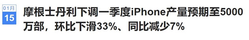 1月15日,摩根士丹利最新報(bào)告中也指出,2024年第一季度iPhone的產(chǎn)量預(yù)期下調(diào)至5000萬臺(tái),環(huán)比下滑33%,同比減少7%。