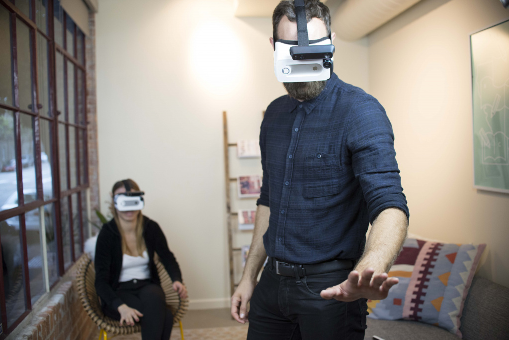現(xiàn)在該公司決定利用深度感知的力量將一臺移動VR頭盔變成混合現(xiàn)實設(shè)備,將虛擬和現(xiàn)實世界進行融合。由于Bridge VR頭盔上方安裝了結(jié)構(gòu)傳感器,Bridge VR就知道你在空間中所處的位置,并且自動調(diào)整虛擬世界。當(dāng)你即將碰到現(xiàn)實世界中的物體時候,Bridge VR也會發(fā)出警告。