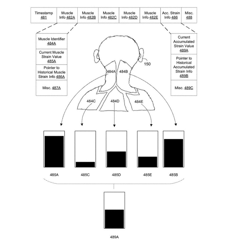 “該方法包括……獲取與計(jì)算系統(tǒng)相關(guān)的用戶的頭部姿態(tài)信息,” 該專利稱,“并根據(jù)頭部姿態(tài)信息確定用戶的累積應(yīng)變值。”