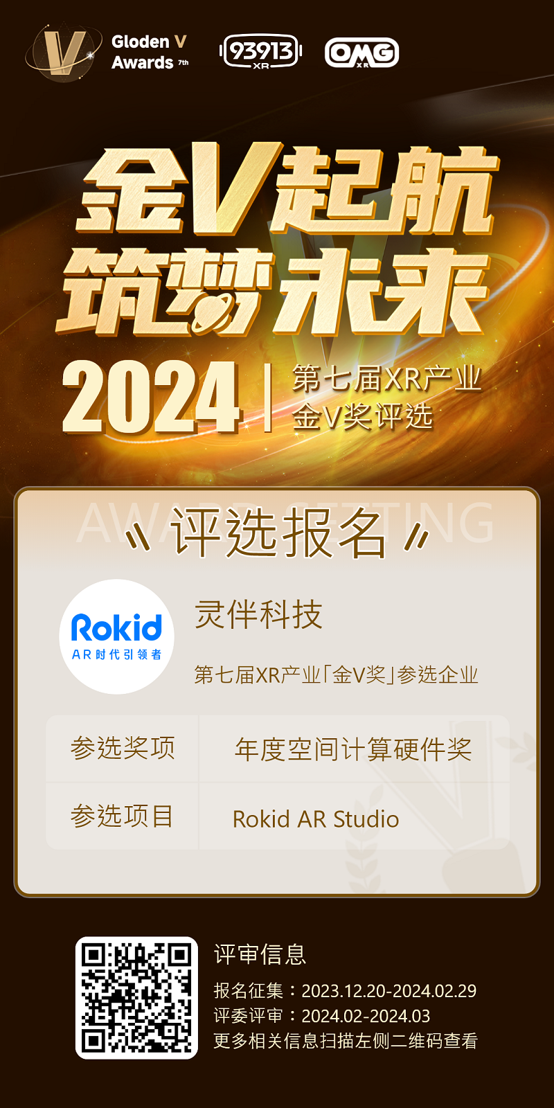 金V啟航,筑夢(mèng)未來!誠摯歡迎業(yè)內(nèi)優(yōu)秀企業(yè)踴躍報(bào)名參選2024XR產(chǎn)業(yè)「金V獎(jiǎng)」,同時(shí)也讓我們共同期待這場(chǎng)屬于每一位在XR產(chǎn)業(yè)執(zhí)著前行的夢(mèng)想者的年度盛典。