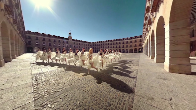 《公主披風(fēng)》是四部作品中的第一部,她與之后推出的《每一天》都是在西班牙外景拍攝的。在壯觀(guān)的宮殿廣場(chǎng)和斗獸場(chǎng),看少女們穿著華麗舞裙,在明快的節(jié)奏下翩翩起舞,如果你還沒(méi)有看過(guò),我建議你趕緊去體會(huì)一下。因?yàn)槭鞘彝馀臄z,所以我感覺(jué)明星與鏡頭的距離并不是很近,大概是一個(gè)中景的距離,我想這樣的考慮主要是為了更多表現(xiàn)外景的恢宏大氣,而實(shí)際效果的確非常完美??梢哉f(shuō),《公主披風(fēng)》是一部MV中的歌舞大片。
