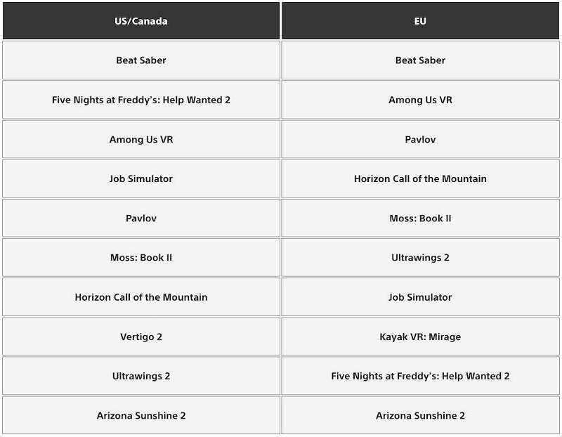 Playstation Store熱門游戲下載排行榜每月發(fā)布,通過該榜單可以了解列出的VR游戲相對于其他游戲的銷售情況。