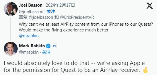 Meta倡議蘋果讓Quest成為AirPlay接收器。