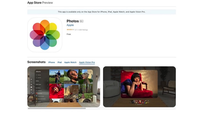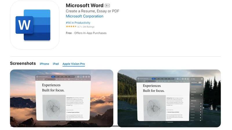 查看visionOS應(yīng)用網(wǎng)頁時,網(wǎng)頁會列出“visionOS”應(yīng)用屏幕截圖和兼容性,從而讓你更深入了解哪些應(yīng)用將支持Vision Pro。