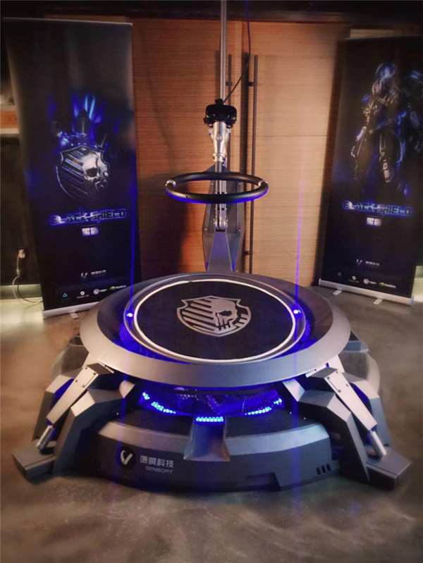在業(yè)界角度來看,《黑盾》選擇以免費(fèi)開放的方式來聚攏玩家占領(lǐng)線下體驗(yàn)店只是陳修超計(jì)劃中的第一步。早在去年的數(shù)字娛樂聯(lián)盟啟動(dòng)儀式上,陳修超就曾展出專屬于黑盾的反重力競(jìng)技設(shè)備,這樣的硬件設(shè)備不僅解決了在游戲中移動(dòng)的輸入問題,而且可以讓玩家解決移動(dòng)時(shí)產(chǎn)生的暈眩問題。但即使是這樣充滿科技感的產(chǎn)品在面對(duì)沉迷于蛋椅和切水果這類休閑VR游戲的玩家時(shí)還是會(huì)顯得十分無力。所以《黑盾》在通過免費(fèi)開放的方式聚攏玩家并且占領(lǐng)線下店之后,《黑盾》便可以通過其強(qiáng)大的市場(chǎng)影響力將一些包括機(jī)械臂和力反饋手套在內(nèi)的一系列硬件設(shè)備引入到更多的體驗(yàn)店。