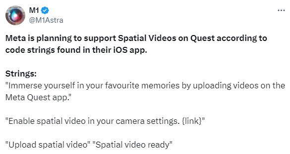 Quest v62更新引入了對空間視頻的支持,而這是Vision Pro 3D視頻格式。這些視頻通過Meta Quest App上傳到Meta的服務(wù)器,隨后便能在Meta Quest中訪問。這與全景圖類似,Meta已經(jīng)為此奠定了技術(shù)基礎(chǔ)。