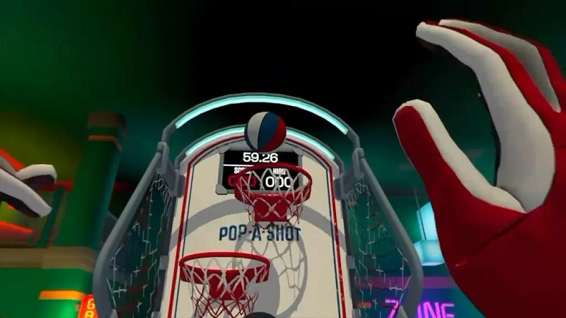 「Just Hoops」由Realcast開發(fā),于2021年上線Quest App Lab,游戲靈感來自經(jīng)典街機(jī)游戲「Pop-A-Shot」。游戲擁有多個(gè)沉浸式場(chǎng)景且設(shè)有50多個(gè)關(guān)卡,鑒于Vision Pro目前不支持多人模式,未來該版本有望推出多人玩法。