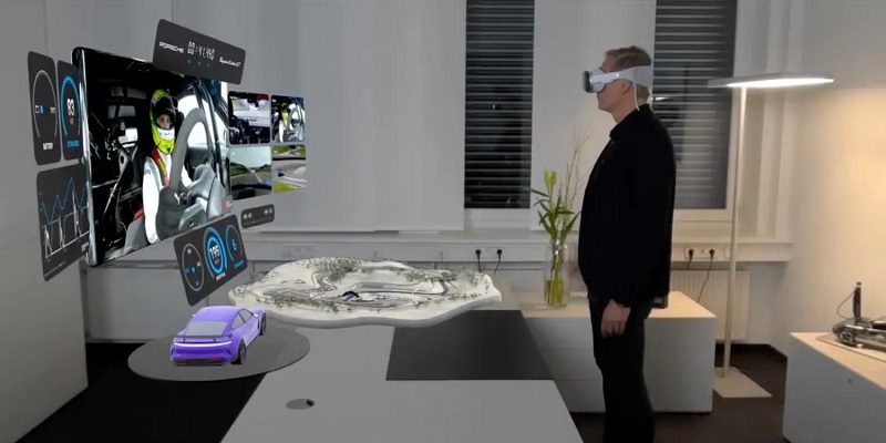 保時捷發(fā)布視頻中,多款蘋果產(chǎn)品亮相,包括iPhone、Apple Watch Ultra和Apple Vision Pro。保時捷展示了針對visionOS的定制應(yīng)用,該應(yīng)用可呈現(xiàn)來自汽車不同攝像頭的反饋圖像、詳細(xì)的賽道3D模型等。