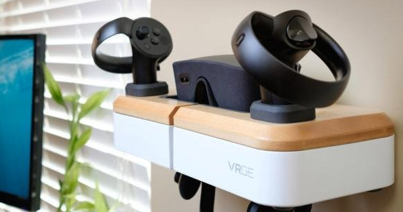 VRGE的VR Dock是一個(gè)跨平臺(tái)儲(chǔ)存器和充電座,兼容各種不同的頭顯和控制器品牌。這款原型產(chǎn)品具有木質(zhì)表面和保護(hù)性橡膠緩沖器,外觀十分優(yōu)雅。該產(chǎn)品目前正在Kickstarter上進(jìn)行眾籌。