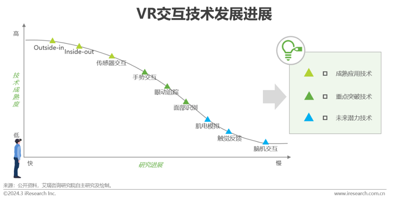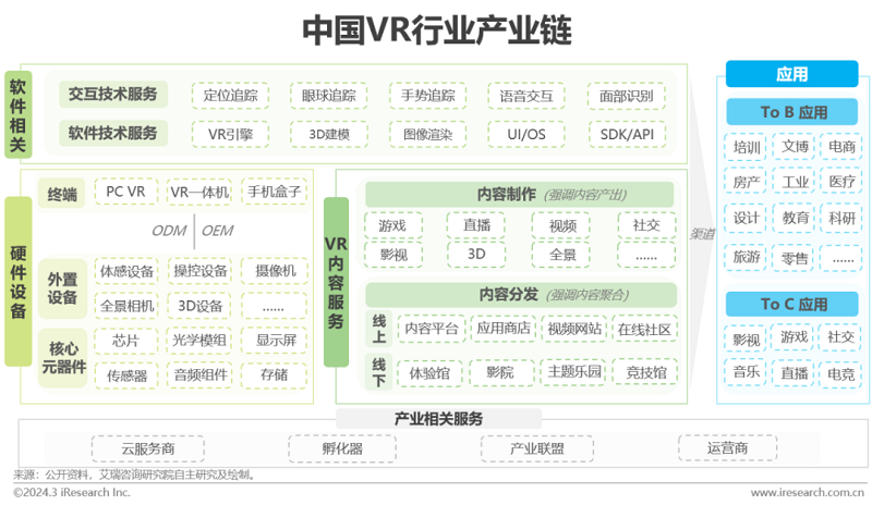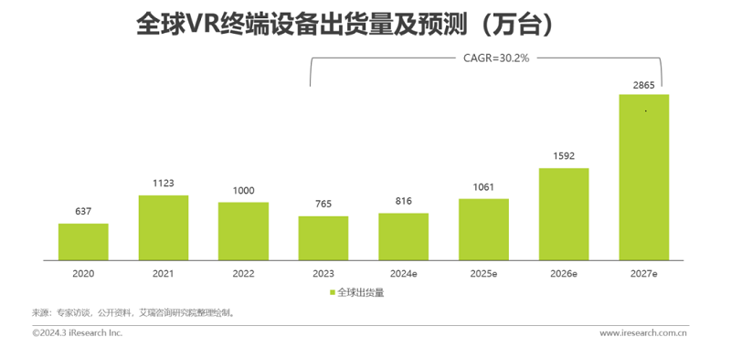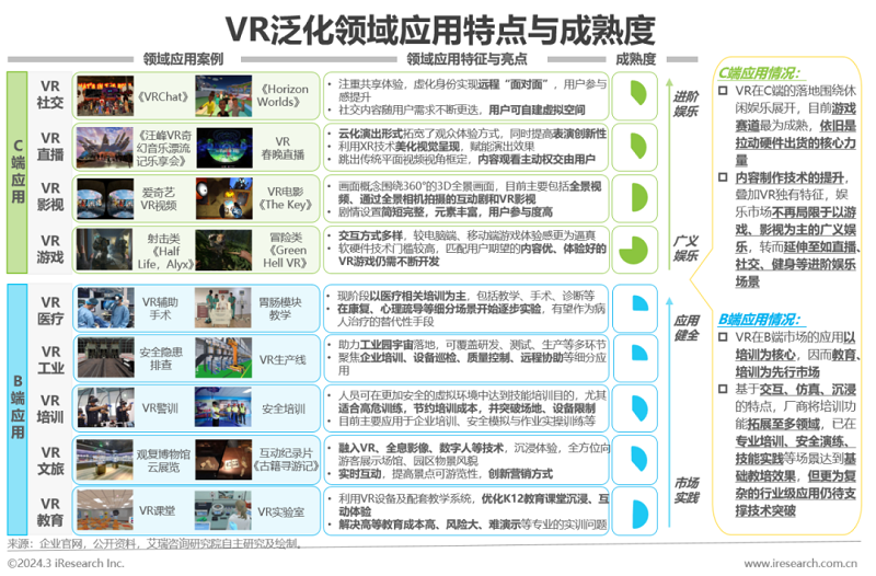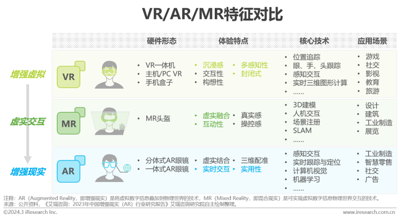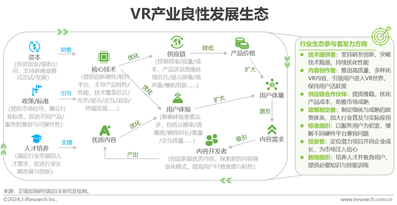 市場調(diào)研機(jī)構(gòu)艾瑞咨詢發(fā)布2024中國VR行業(yè)研究報告,報告指出,新舊玩家推陳出新,特別是Vision Pro產(chǎn)品的問世,極大帶動行業(yè)參與者信心,行業(yè)未來發(fā)展方向漸進(jìn)明晰,新品層出不窮,VR邁入快速成長期。