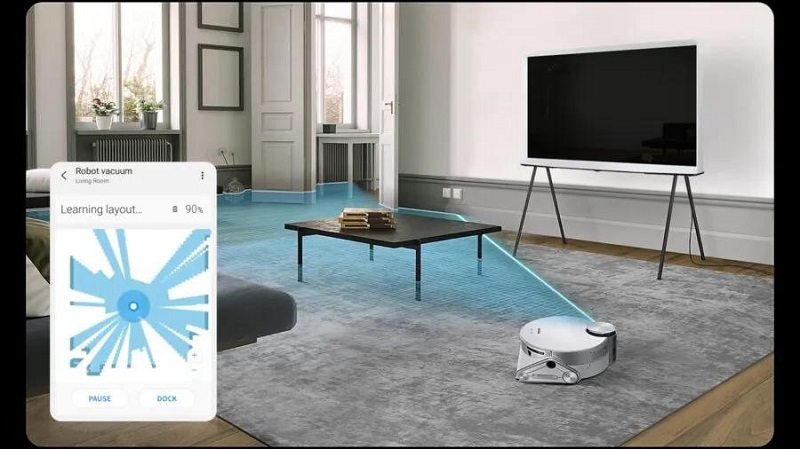 Map View的先前版本只是一個(gè)2D模型,僅適用于平面圖家庭管理。然而,這個(gè)新更新的3D地圖視圖利用了三星設(shè)備中的空間人工智能,例如Bespoke Jet Bot——一種人工智能驅(qū)動(dòng)的機(jī)器人真空吸塵器,使用機(jī)載LiDAR傳感器來精確測量和繪制家庭布局。通過這些布局,用戶將能在3D地圖上更輕松了解其房屋的形狀和空間條件。