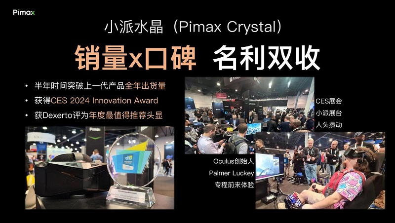 據(jù)小派科技透露,其最新旗艦產(chǎn)品小派水晶(Pimax Crystal)自去年年中正式發(fā)售后,僅用半年的時間,就突破了上一代產(chǎn)品全年的出貨量,并直接推動小派2023年全年的收入實現(xiàn)超過100%的增長。