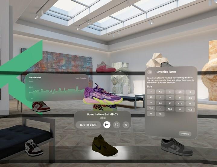 豐富的產(chǎn)品發(fā)現(xiàn):通過眼動(dòng)追蹤和手勢(shì)瀏覽StockX完整產(chǎn)品目錄,并以令人驚嘆的細(xì)節(jié)查看產(chǎn)品。