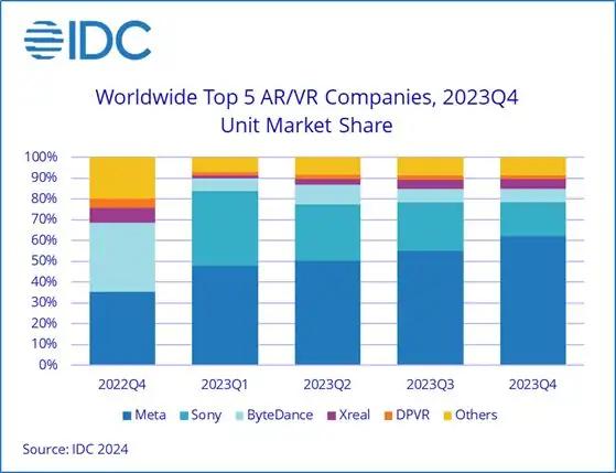 IDC移動(dòng)和消費(fèi)設(shè)備追蹤器研究經(jīng)理Jitesh Ubrani表示:“幾個(gè)季度前,Meta的市場(chǎng)份額被PICO和后來(lái)的索尼奪走,但由于持續(xù)的硬件補(bǔ)貼和Quest 3的推出,Meta份額一直在穩(wěn)步攀升。雖然蘋(píng)果的入局以及該領(lǐng)域其他供應(yīng)商的更新設(shè)備給Meta增加了壓力,但Meta的領(lǐng)先地位在今年可能不會(huì)受到挑戰(zhàn),因?yàn)樵摴镜牡统杀?、大批量生產(chǎn)戰(zhàn)略將使其區(qū)分于其他廠商?!?/p>