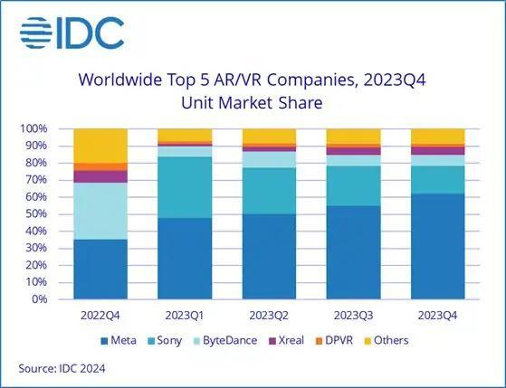 IDC于3月5日發(fā)出文章《據(jù)IDC統(tǒng)計(jì),2023年假期期間AR/VR頭顯激增》,文中提到“隨著宏觀經(jīng)濟(jì)壓力緩解和新產(chǎn)品推出,全球增強(qiáng)現(xiàn)實(shí)和虛擬現(xiàn)實(shí)(AR/VR)頭顯出貨量在2023 年第四季度(4Q23)同比增長(zhǎng)130.4%?!?/p>