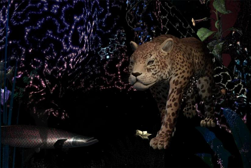 《現(xiàn)世方舟》與VR裝置《重影時(shí)刻》同主題的短片,人類通過3D掃描技術(shù),嘗試創(chuàng)建現(xiàn)實(shí)世界的虛擬復(fù)制品,創(chuàng)建動(dòng)物、雨林、城市和人類的 3D 模型,留存地球的當(dāng)下樣貌,在生態(tài)崩潰之際,通過一些數(shù)字諾亞方舟的野獸和物體來存檔現(xiàn)世。