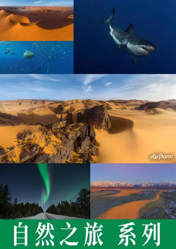 極光魅影,展現(xiàn)科拉半島的極光勝景;沙丘日夜,展現(xiàn)撒哈拉沙漠的文化樣貌和日夜奇觀;與鯊?fù)?,展現(xiàn)與海地猛獸同游的驚心動(dòng)魄;環(huán)游世界:展現(xiàn)大千世界的環(huán)游航拍之旅。