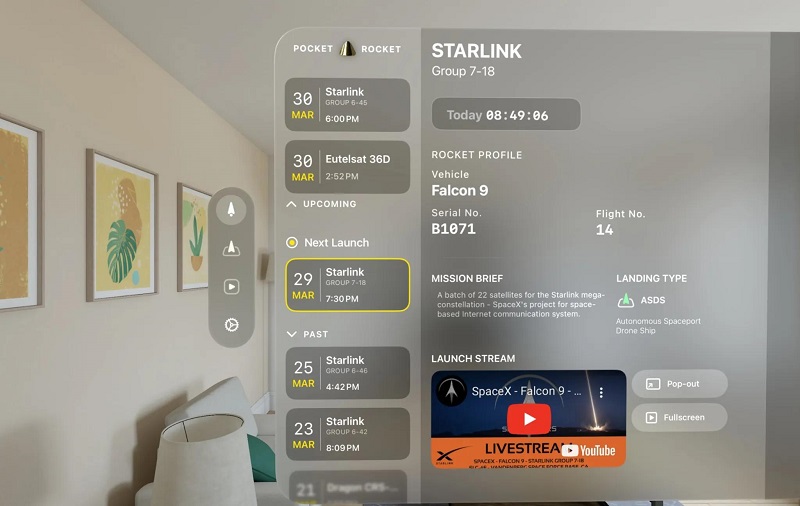 「Pocket Rocket」不僅僅是一個火箭可視化工具,從追蹤即將到來的發(fā)射到參考歷史發(fā)射數(shù)據(jù),「Pocket Rocket」是太空愛好者的必備工具。而「Pocket Rocket」Vision Pro版則更進一步,成為遠程體驗發(fā)射的最佳方式。