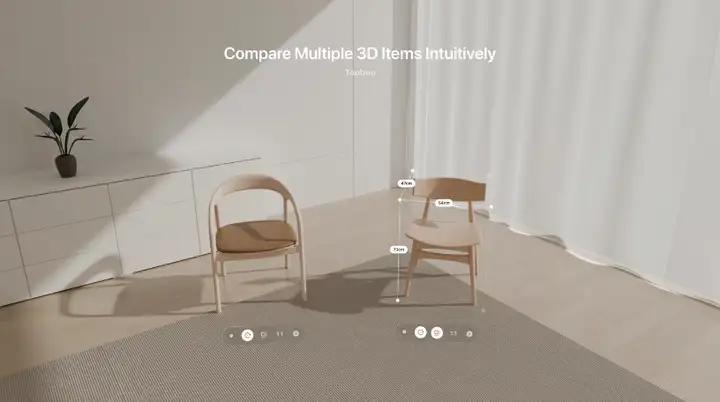 另外,淘寶Vision Pro版支持同時顯示多個商品,方便比較,并可視化商品尺寸,包括長、寬、高參數(shù)。用戶還可通過應(yīng)用搜索物品并識別其形狀和大小。不過,根據(jù)一些博主的經(jīng)驗,該版本還有一些改進的地方,比如更精確的圖像搜索和更廣泛的產(chǎn)品支持3D視圖。
