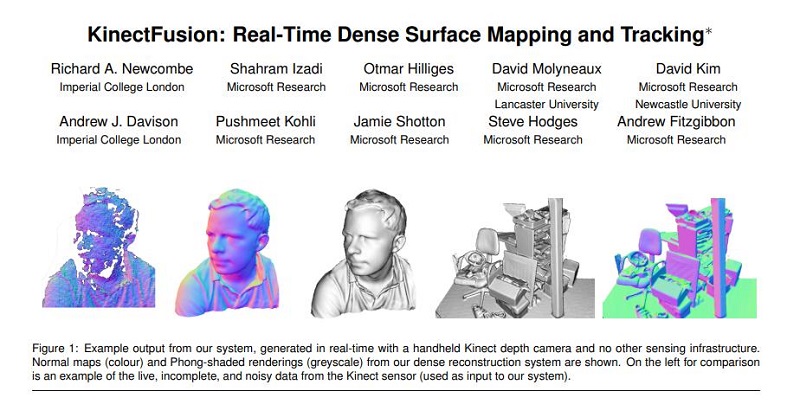 因此,自2013年以來,SLAM技術(shù)開始走向視覺與多傳感器融合的方向發(fā)展,以提升自身在不同環(huán)境下工作的健壯性(魯棒性)。Kinect Fusion正是其中的代表算法之一,這是微軟為Kinect這臺(tái)具備深度傳感器的設(shè)備(即RGB-D)量身打造的SLAM算法。另一種方向則是將視覺傳感器與IMU相結(jié)合的算法,通常被稱為vi-SLAM算法。
