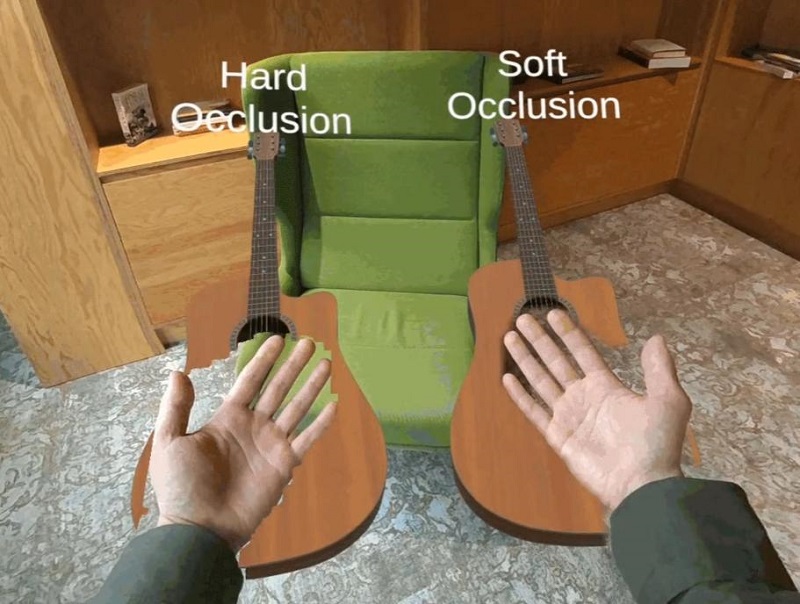 ▲手臂遮擋了虛擬的吉他,圖源:uploadvr