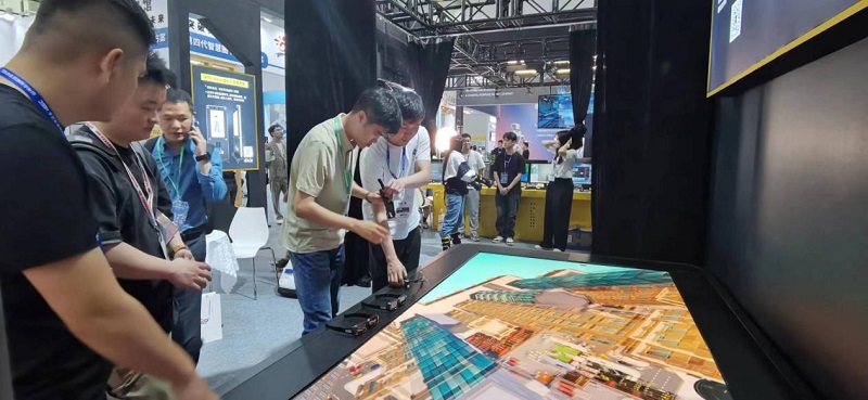其中,在本次展會(huì)上亮相的全息3D智能交互數(shù)字沙盤從原先的雙人主視角升級(jí)到了三人主視角,支持三個(gè)人同時(shí)用手柄觀看、操控,也可以通過(guò)數(shù)據(jù)手套實(shí)現(xiàn)與數(shù)字虛擬場(chǎng)景更深度的交互操作,實(shí)現(xiàn)了更大規(guī)模的交互體驗(yàn)與更為廣闊的場(chǎng)景化應(yīng)用。