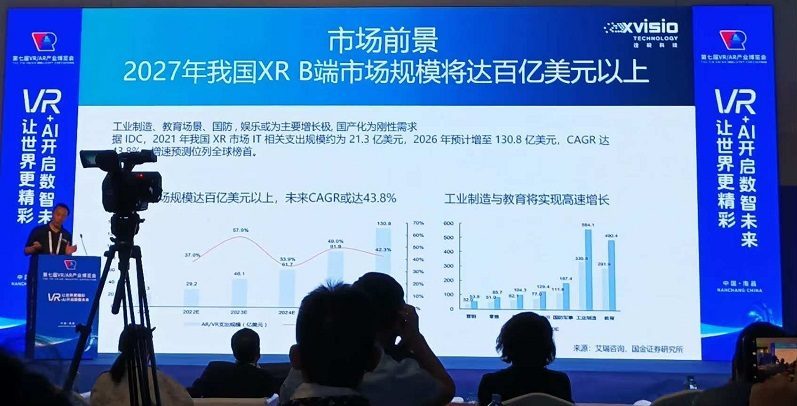 據IDC數據顯示,2021年我國XR市場IT相關支出規(guī)模約為21.3億美元,2026年預計增至130.8億美元,CAGR(復合年增長率)達43.8%,增速預測位列全球榜首。預計到2027年,我國XRB端市場規(guī)模將達百億美元以上,工業(yè)制造、教育場景、國防、娛樂成為主要增長極,這充分體現了XR行業(yè)廣闊的市場前景,而AI與XR的深度融合將成為推動市場增長的核心引擎。?