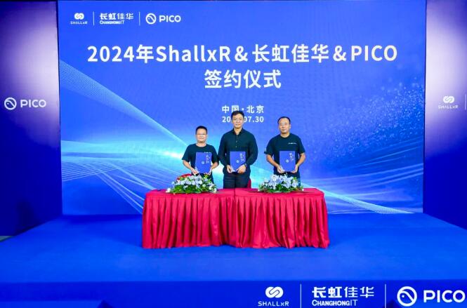 發(fā)布會(huì)上,ShallxR、長(zhǎng)虹佳華和PICO三家公司舉行了產(chǎn)品聯(lián)合研發(fā)和代理協(xié)議的簽約儀式,長(zhǎng)虹佳華同時(shí)作為PICO重要合作伙伴和ShallxR飛椅的國(guó)內(nèi)總經(jīng)銷商,將整合高端XR硬件設(shè)備和領(lǐng)先的操作系統(tǒng)及開(kāi)發(fā)平臺(tái),以此為入口,打造場(chǎng)景級(jí)的元宇宙解決方案,落地以文旅為代表的應(yīng)用場(chǎng)景,為使用者帶來(lái)極致XR體驗(yàn)的同時(shí),為合作伙伴帶來(lái)切實(shí)的商業(yè)價(jià)值。