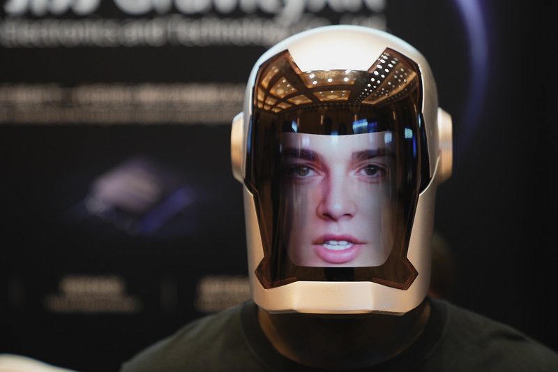 在生成用戶面部的仿真數(shù)字形象后,JX007將人臉“切片并插值”,接著渲染在XR前屏上。通過獨(dú)特的柔性 OLED 面板和透鏡光柵,最終實(shí)現(xiàn)3D人臉圖像的視覺效果,這就是反向透視(RST)功能,大大提高了人們佩戴XR頭顯時(shí)的社交便利性,打破了屏幕的隔閡,同時(shí)大大拓展了自我表達(dá)的空間。