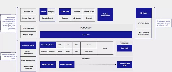 數(shù)據(jù)力ShallxR具備杰出軟硬件融合和云端協(xié)作能力。 其中,研發(fā)硬件符合工業(yè)級分辨率,全方位打通供應鏈;并通過軟件研發(fā),打造第一視角實時交互、遠程指揮、數(shù)據(jù)存儲為一體的協(xié)同平臺。