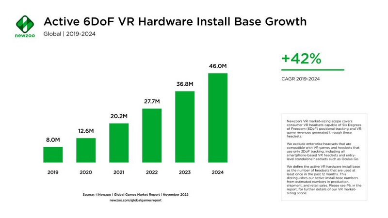 Newzoo預(yù)測(cè)2024年VR游戲市場(chǎng)收益將翻一番