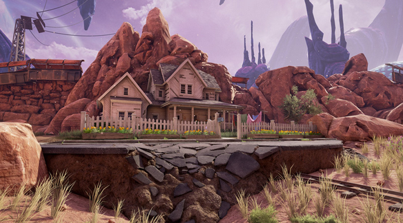 雖然《仰沖異界》和《神秘島》不是同一個(gè)世界,但它遵循相同的公式。游戲開始玩家會(huì)被外星人“綁架”到一個(gè)幾乎空無一人的世界,隨處可見的符號(hào)將幫助玩家揭開這里的秘密。《仰沖異界》是一個(gè)寂寞的游戲,綁架玩家到這里的外星人早已消失。跟《神秘島》一樣,《仰沖異界》是一個(gè)美麗的地方,它的第一世界是一個(gè)鍍金時(shí)代的西部老城,有高聳的峭壁和廢棄枯萎的花園,到處是引人注目的拼圖框和怪異的虛構(gòu)空間。擬真的場景讓人感覺就像存在真實(shí)世界一樣,這就是它為什么會(huì)是一個(gè)出色的虛擬現(xiàn)實(shí)項(xiàng)目的原因。