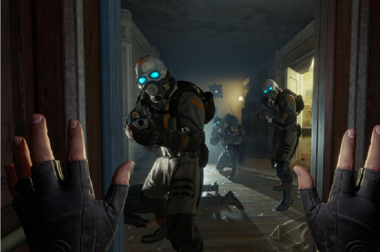 Valve,正是目前HTC Vive頭顯設(shè)備所運(yùn)用的steamvr系統(tǒng)的研發(fā)者。但是,一個(gè)資深gamer,對(duì)他們公司所發(fā)布的游戲絕對(duì)不會(huì)陌生。而《傳送門》絕對(duì)是經(jīng)典之中的經(jīng)典,由Valve Software研發(fā)的獨(dú)具風(fēng)格的第一人稱射擊游戲和益智解謎游戲的結(jié)合體,玩家手中的武器(傳送槍)并非為射殺敵人而存在,而是用于在墻壁、地板上發(fā)射打開(kāi)傳送門,在藍(lán)門與橙門直接穿梭。 通過(guò)這種方式來(lái)解開(kāi)各種機(jī)關(guān)和謎題。