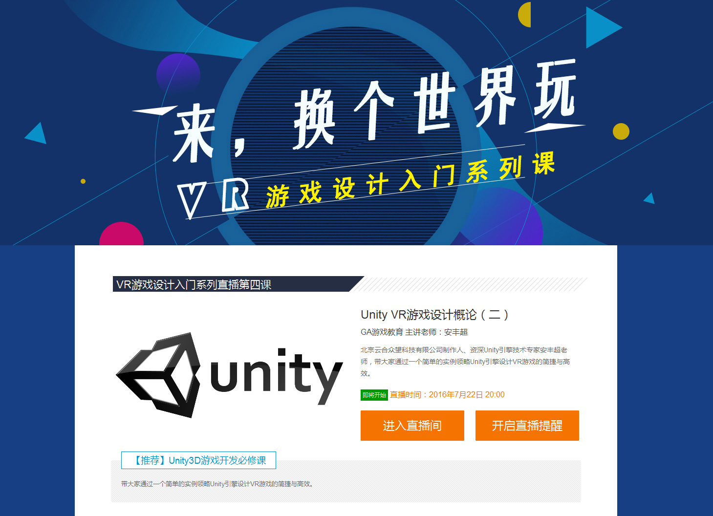 本期直播主題:Unity VR游戲設計概論(二)