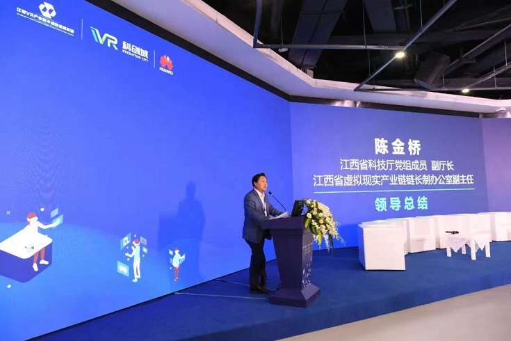 中國工程院院士、江西虛擬現(xiàn)實(shí)產(chǎn)業(yè)鏈專家咨詢委員會(huì)主任趙沁平,省科技廳黨組成員、副廳長,省虛擬現(xiàn)實(shí)產(chǎn)業(yè)鏈辦公室副主任陳金橋,江西財(cái)經(jīng)大學(xué)校長、法學(xué)教授、博士生導(dǎo)師鄧輝,省工業(yè)和信息化廳軟件及服務(wù)業(yè)處處長聶云霞依次作開場致辭。省科技廳、省工業(yè)和信息化廳、省文旅廳、省司法廳、南昌市政府相關(guān)處室負(fù)責(zé)人到會(huì)指導(dǎo)交流。