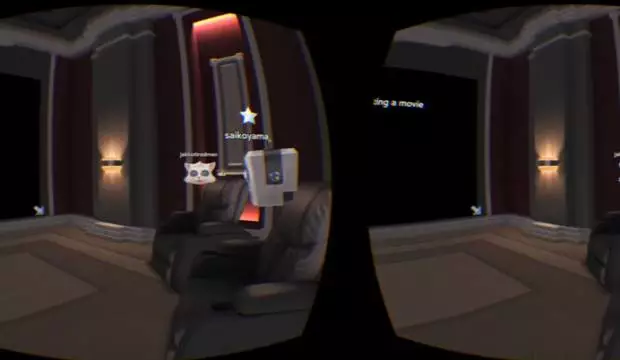 Oculus Social目前是一款虛擬現(xiàn)實(shí)電影觀看軟件。你可以選擇一個(gè)虛擬頭像代表自己,然后你將出現(xiàn)在一種小型電影院中,并坐在其中一個(gè)位置上。你可以從Twitch 或Vimeo 預(yù)設(shè)的電影中選擇一部影片,如果你喜歡,最多還可與其他四位同坐在電影院的人聊天,當(dāng)然他們也是代表真實(shí)人物的虛擬頭像。在當(dāng)前版本中,虛擬頭像沒有身體。只有頭像浮在座位上。當(dāng)用戶在現(xiàn)實(shí)中說話、點(diǎn)頭或轉(zhuǎn)動(dòng)腦袋時(shí),代表他們的頭像也會做出相同的動(dòng)作。立體聲播放屏幕中電影的聲音制造在場的假象,但用戶交談的聲音則來自虛擬頭像。這種體驗(yàn)聽起來也許會很無聊而且隨著虛擬現(xiàn)實(shí)軟件的發(fā)展,這僅屬于初期階段。但這是一個(gè)重要的里程碑:這是為基于Oculus VR平臺提供的第一個(gè)社交體驗(yàn)。