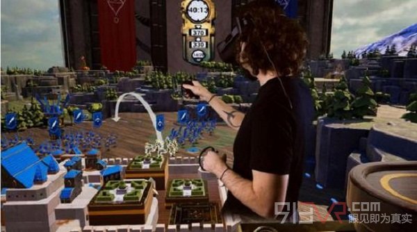 整個(gè)游戲的地圖像個(gè)全息投影的經(jīng)典棋盤,玩家和對(duì)手各有自己的基地!中間白色的空城池誰先占領(lǐng)就歸誰!當(dāng)基地亮出了白色的光環(huán)時(shí),意味著玩家可以biu biu biu地派出火力啦!游戲全程不需要使用額外的手柄,這讓這款VR游戲沉浸感和趣味性大大加深!